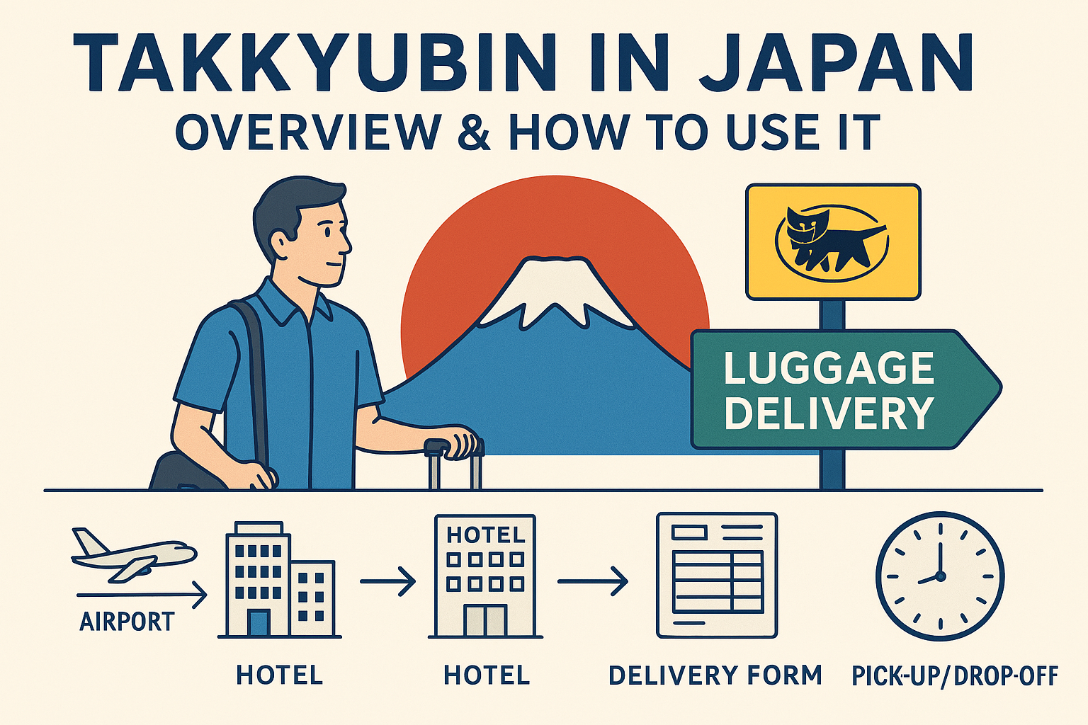 Japan’s takkyubin (TA-Q-BIN) system is an extremely convenient door-to-door luggage delivery service that allows you to send suitcases between airports, hotels, homes, and other destinations. It helps you travel hands‑free, avoid carrying heavy bags through stations, and enjoy a more comfortable trip.